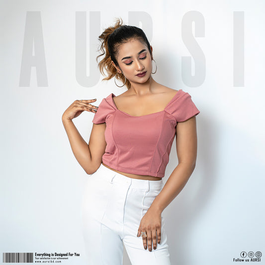 Padded Crop Top - Polyester Spandex Fabric - Mauve Color