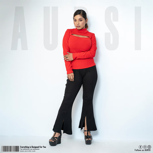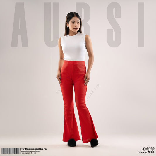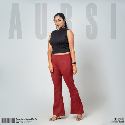 Slit Flare Pants - Ribbed Cotton - Maroon