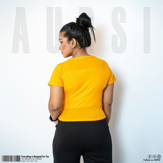 Crop T-Shirt - Ribbed Cotton Fabric - Mastared Yellow