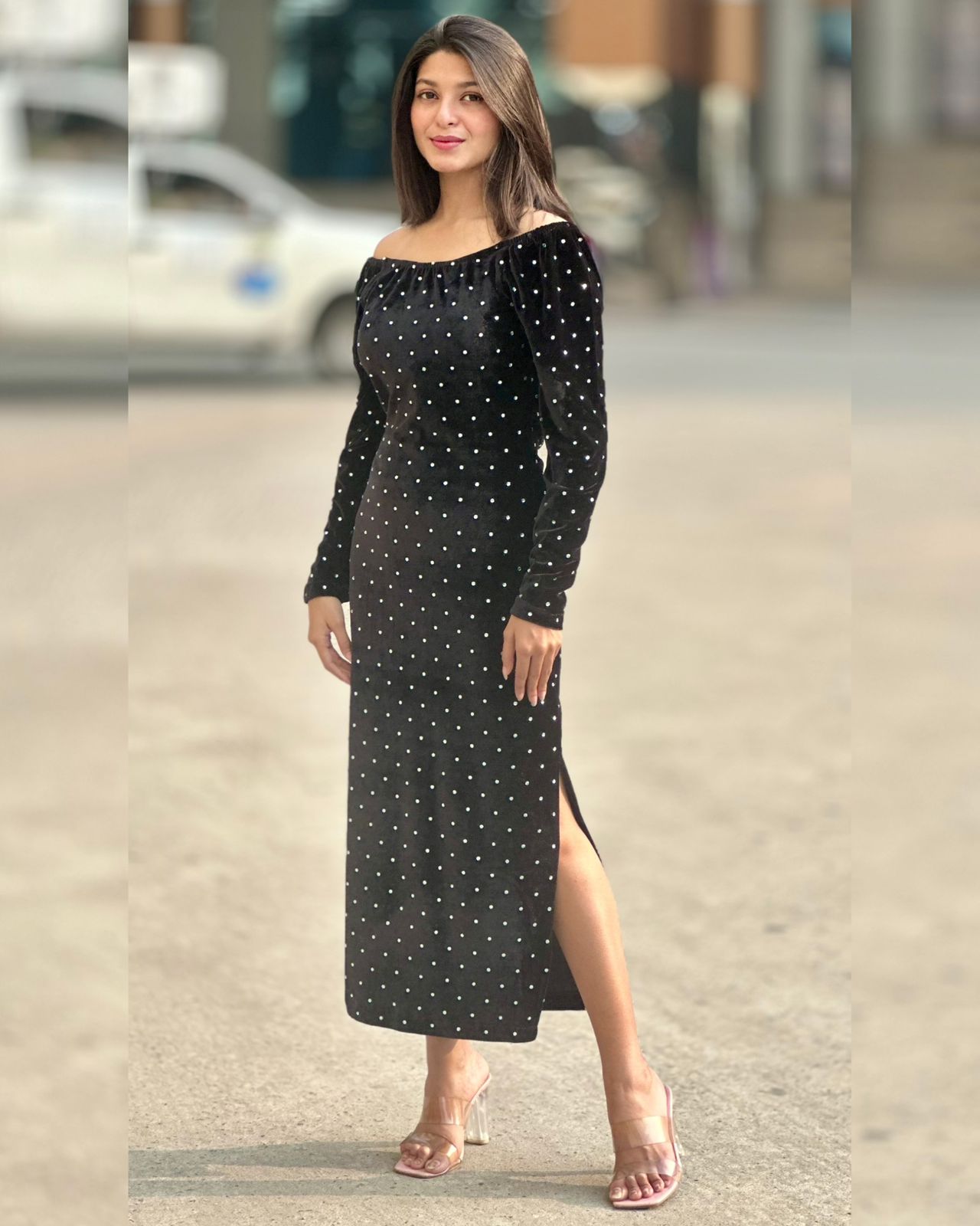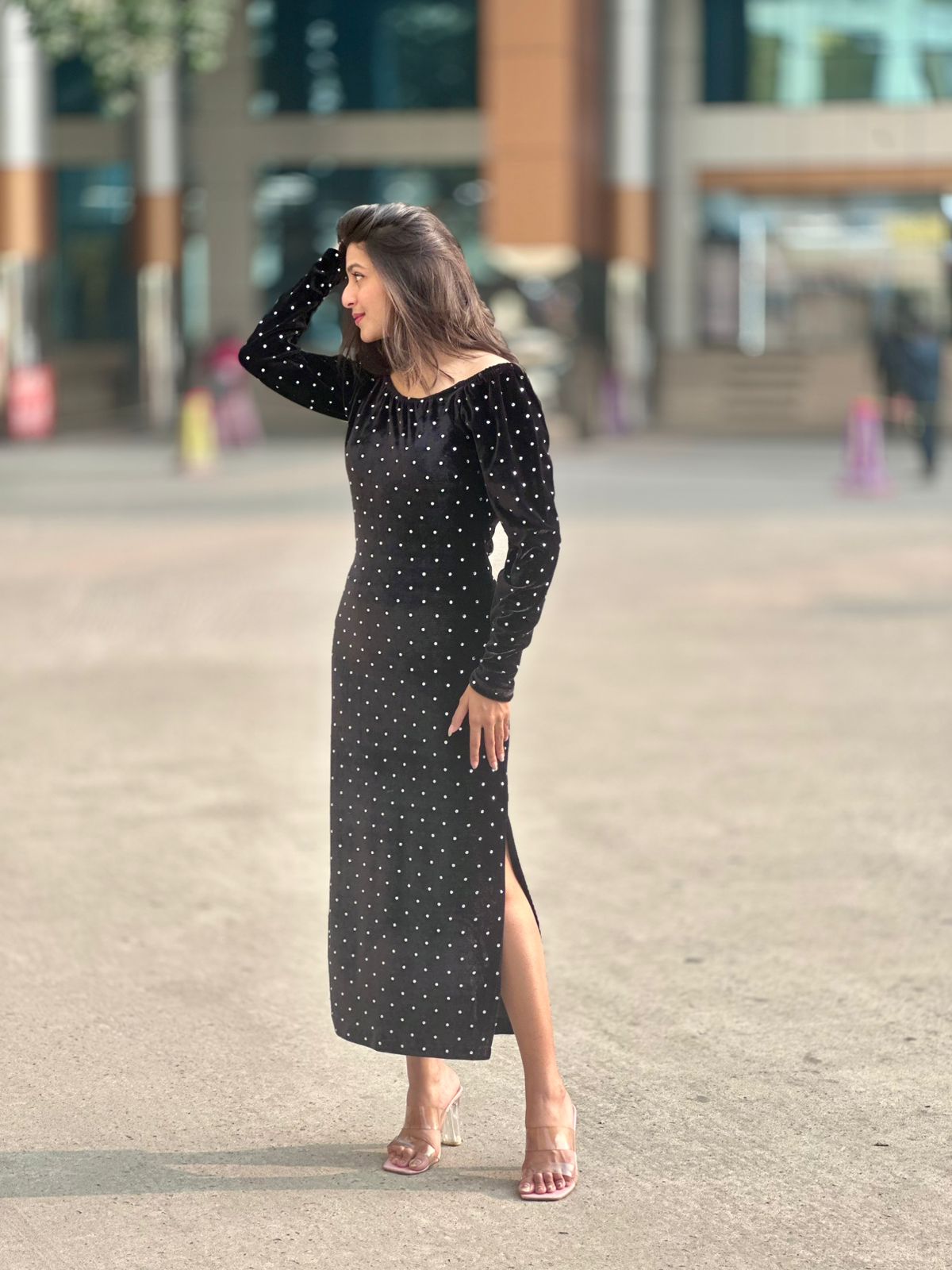 - This model is 5.4ft in height, Bust 34 and she is wearing size S.